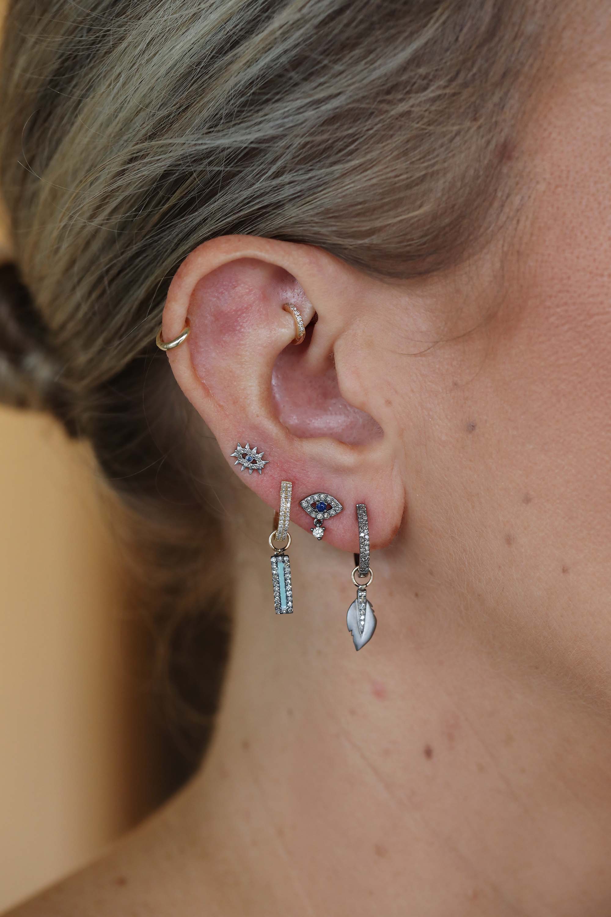A playful evil eye stud with a diamond dangle.