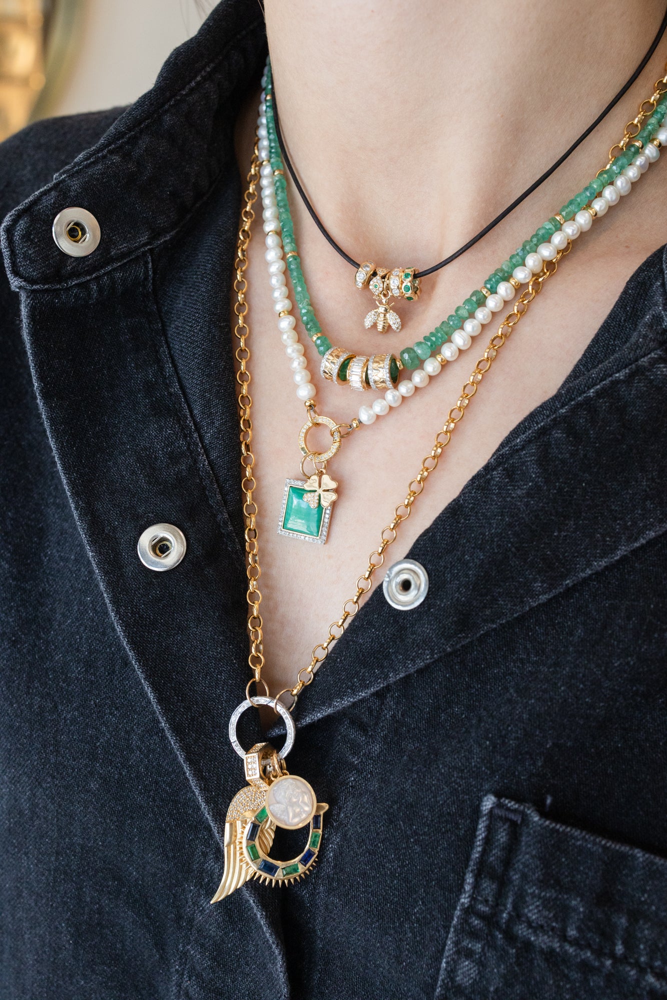 I love this dark green carved jade spacer, it adds drama and dimension to any necklace!