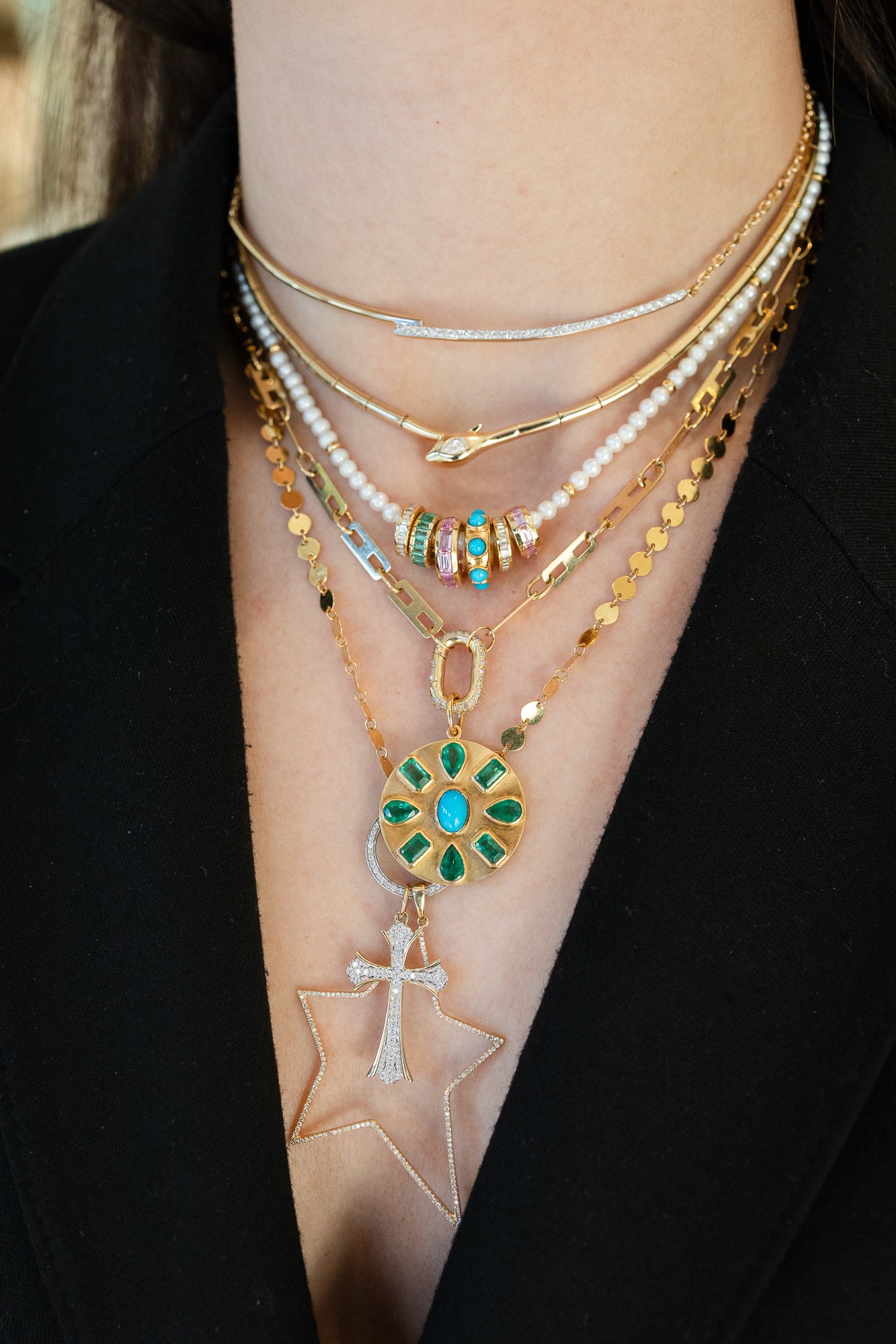This ornate diamond cross charm is so beautiful - a dressy white and yellow gold effect.