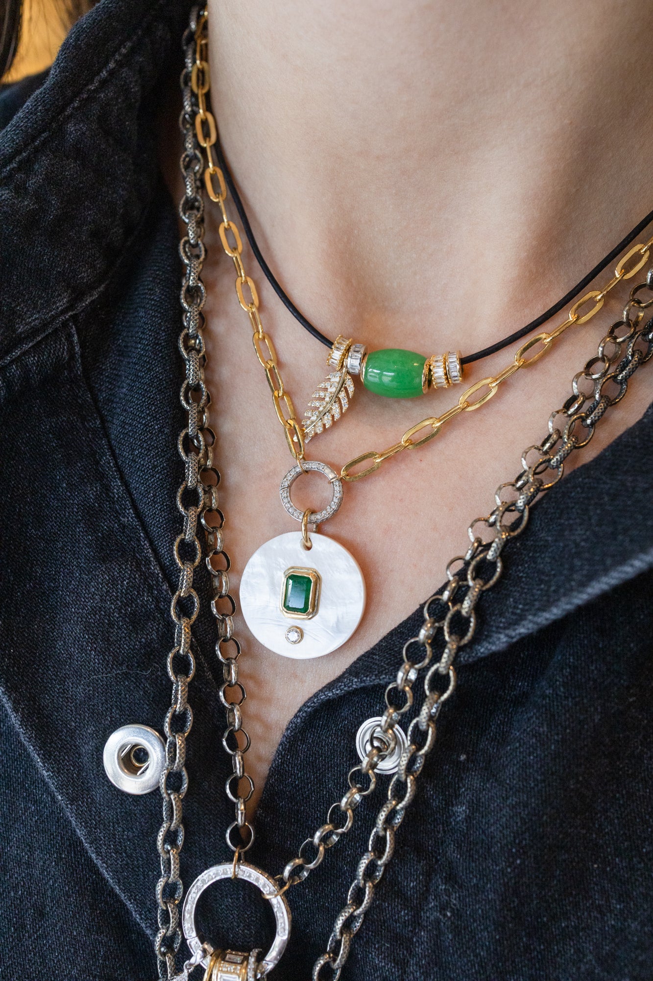 I love this dark green carved jade spacer, it adds drama and dimension to any necklace!