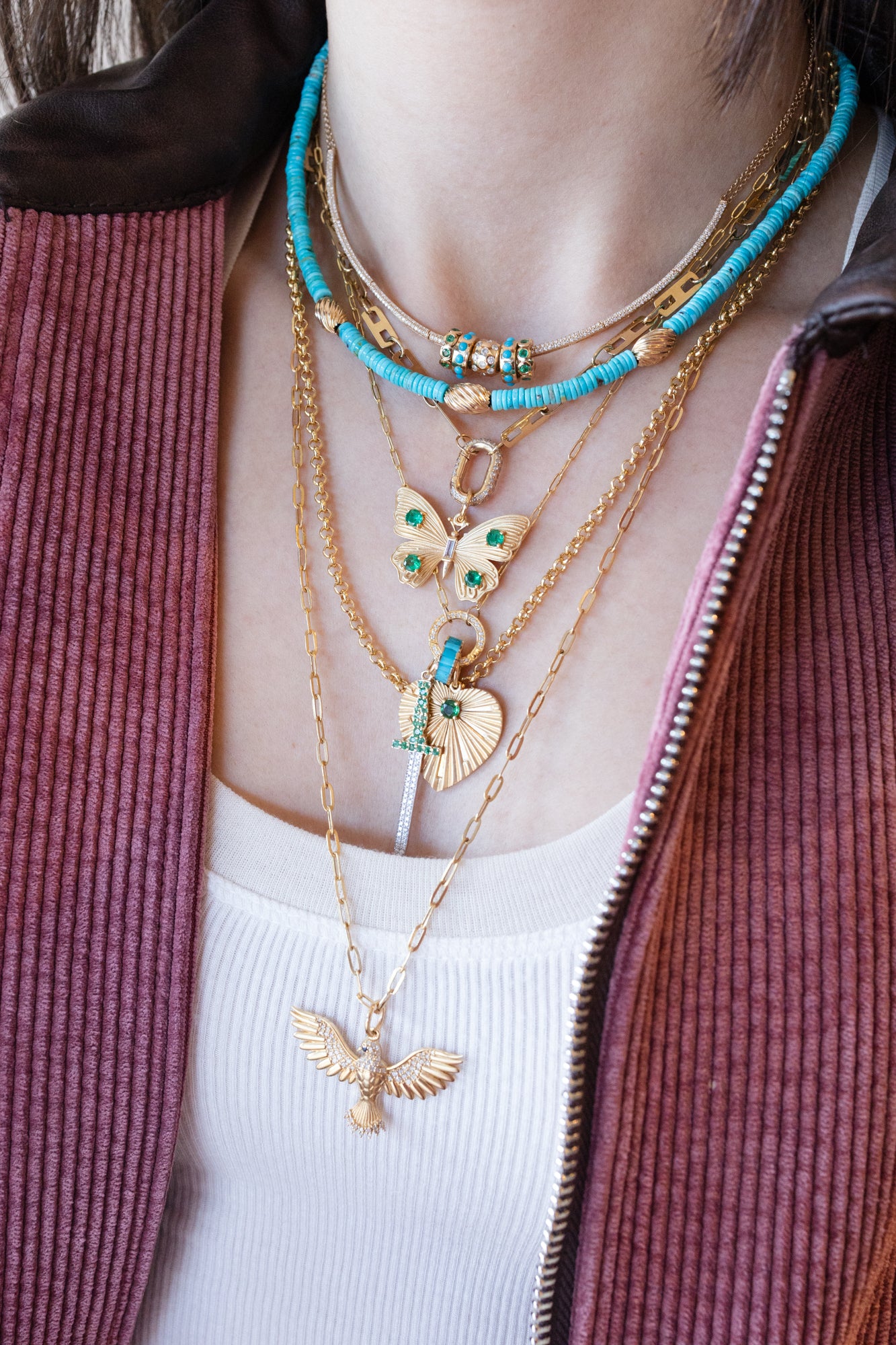 This fanned heart charm with a single emerald gives off a cool vintage vibe.