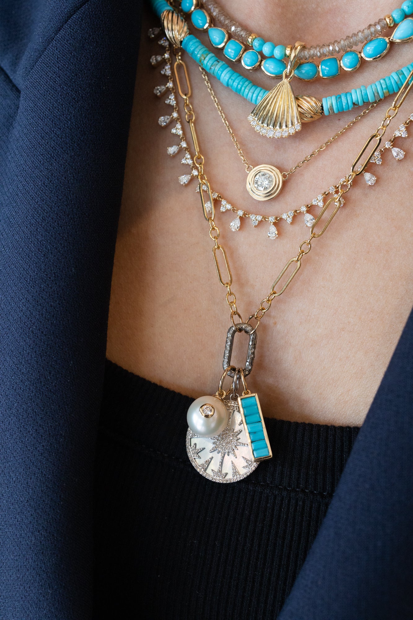 • sterling silver, diamonds, Mother of Pearl