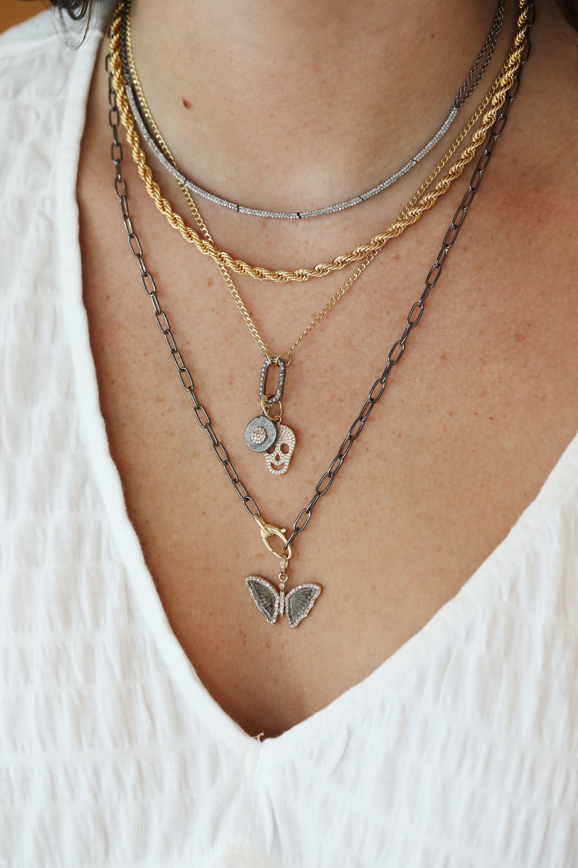 This dainty charm is anything but simple! We love to mix skulls with sparkle!