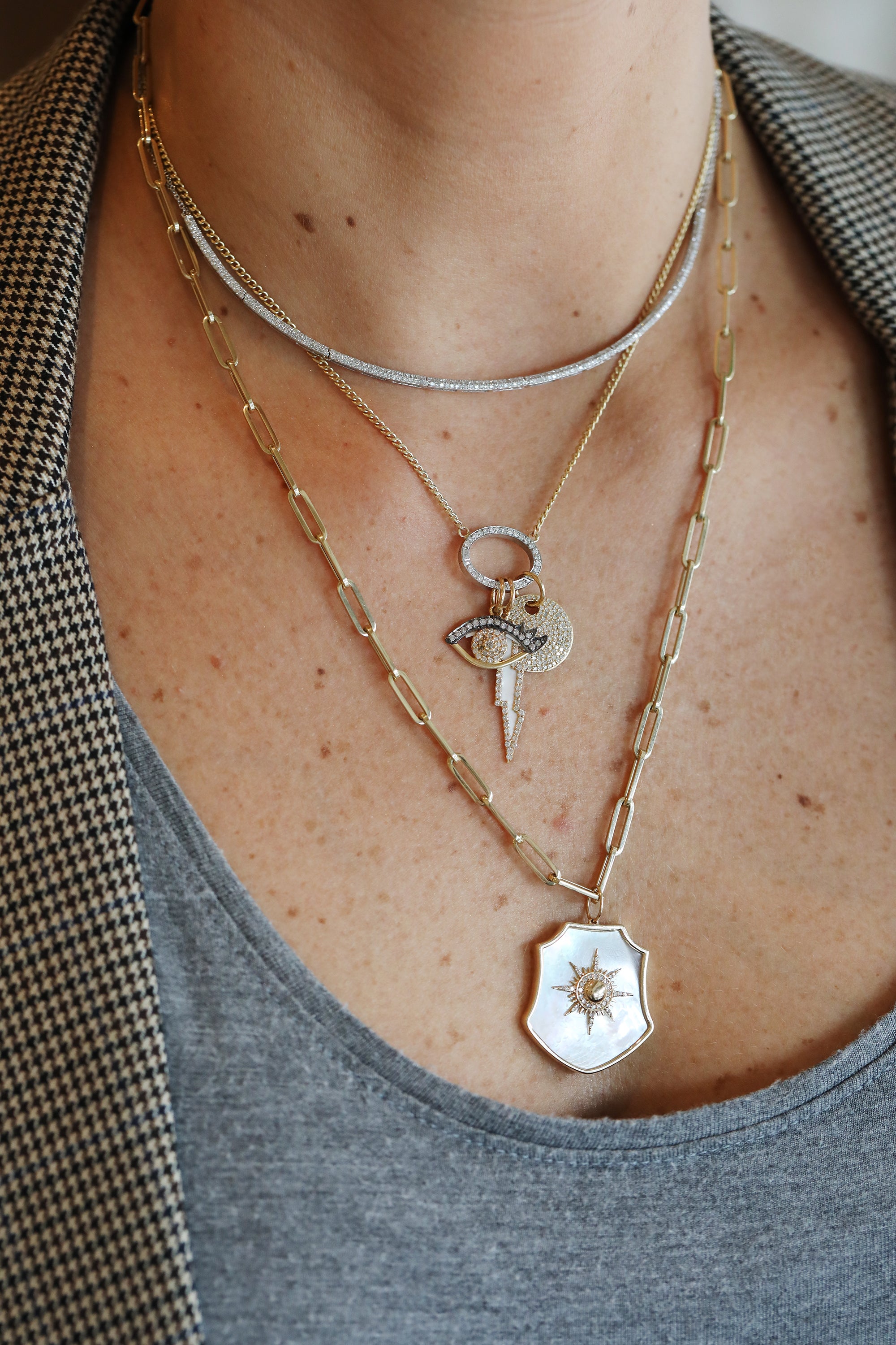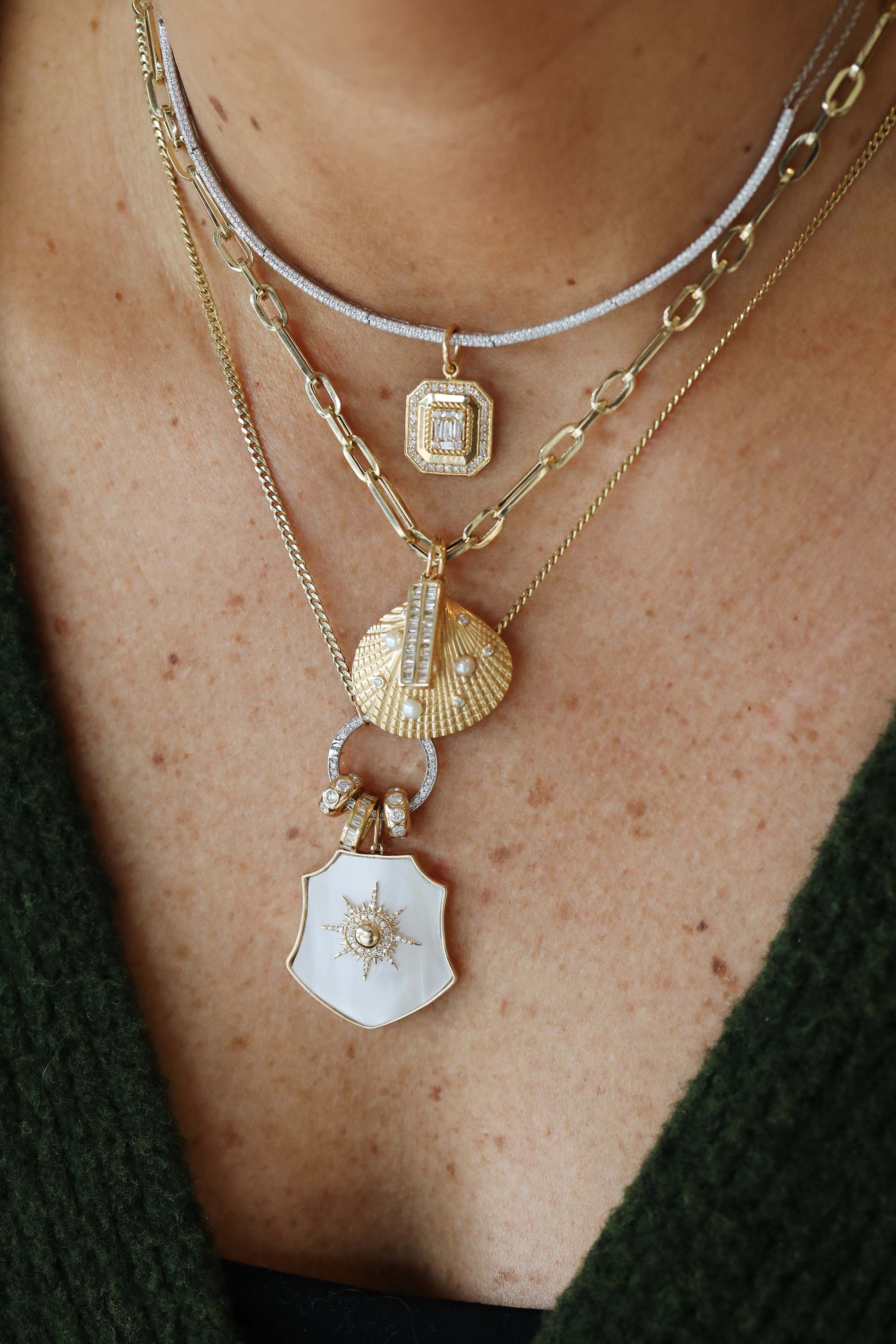 Everything about this mother of pearl charm is so chic! Let this shield protect you and guide you in the right direction.