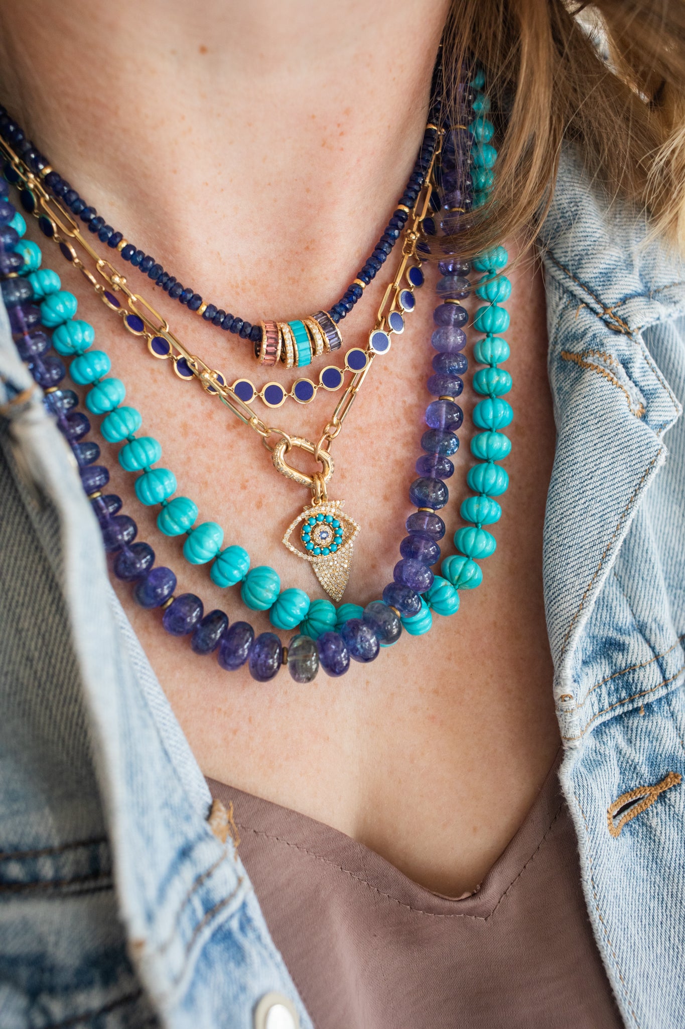 Showcase your charms with a unique charm spacer. Or slide it on to your favorite chain or sapphire strand for a simple, chic look. We love layering 2 or more of this spacer for extra sparkle!