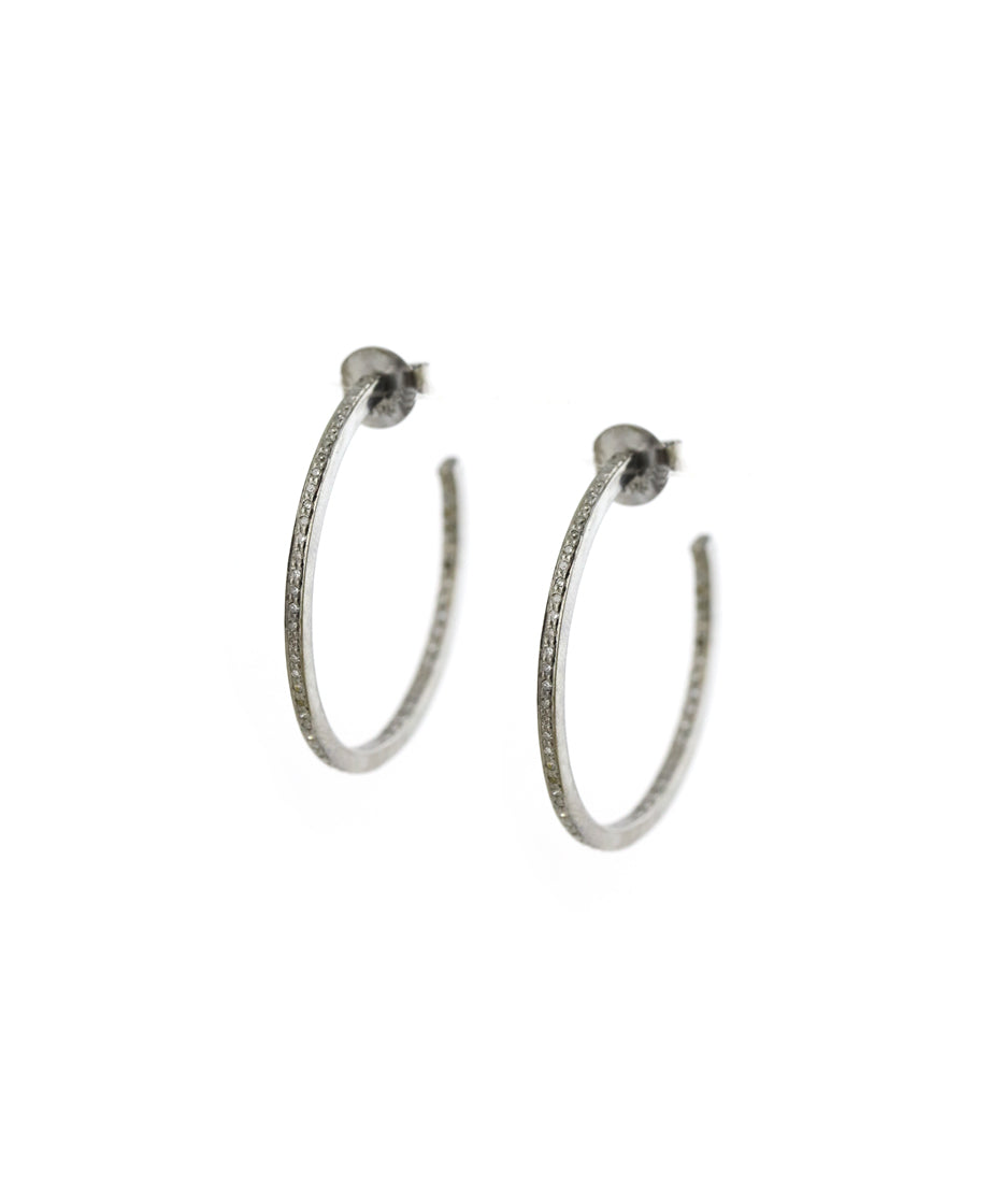 The perfect mix of casual and luxury! These silver diamond hoops are perfect for everyday or your next cocktail party.