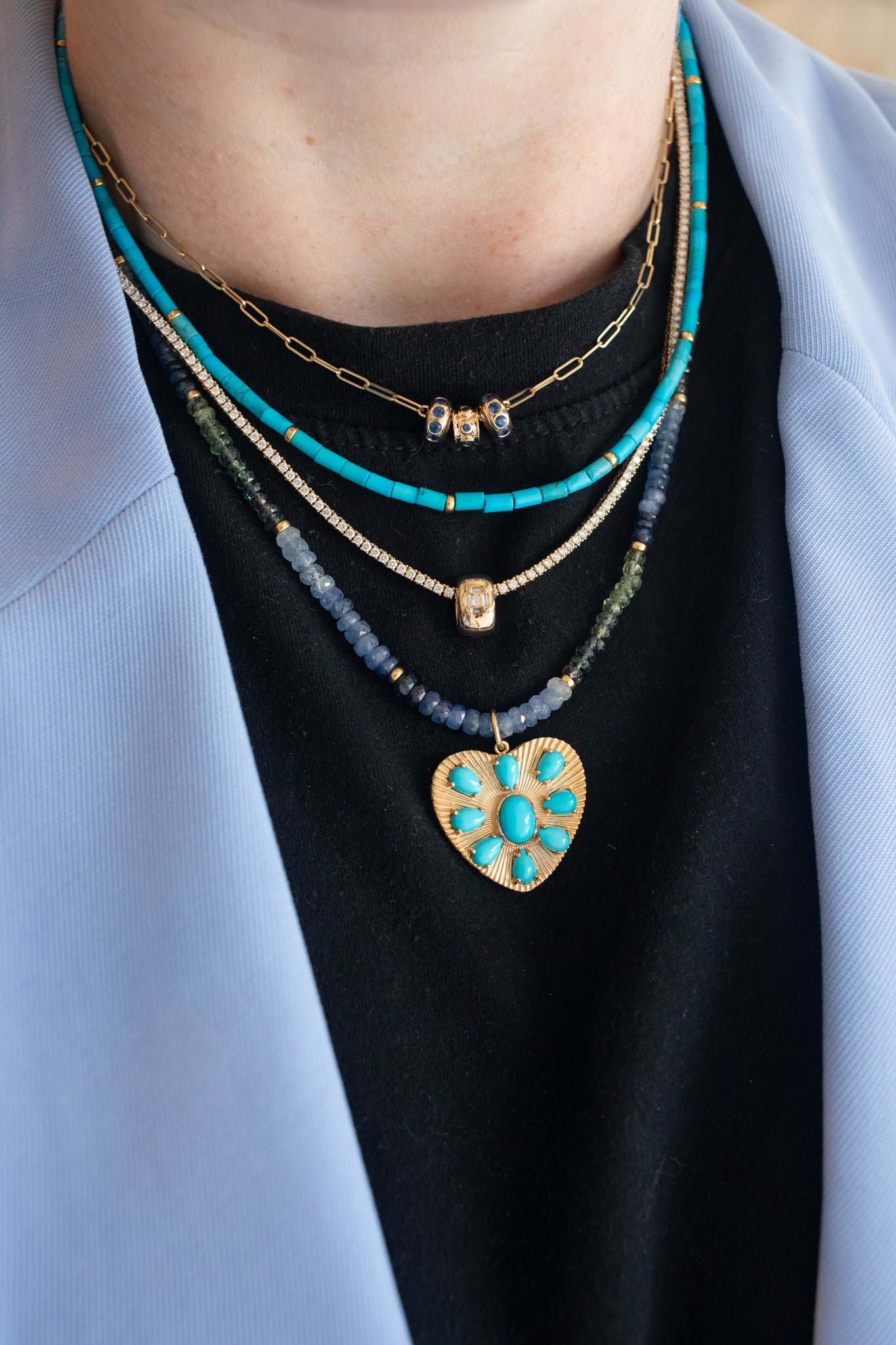 A tiny blue sapphire spacer to separate your charms and add a pop of color.