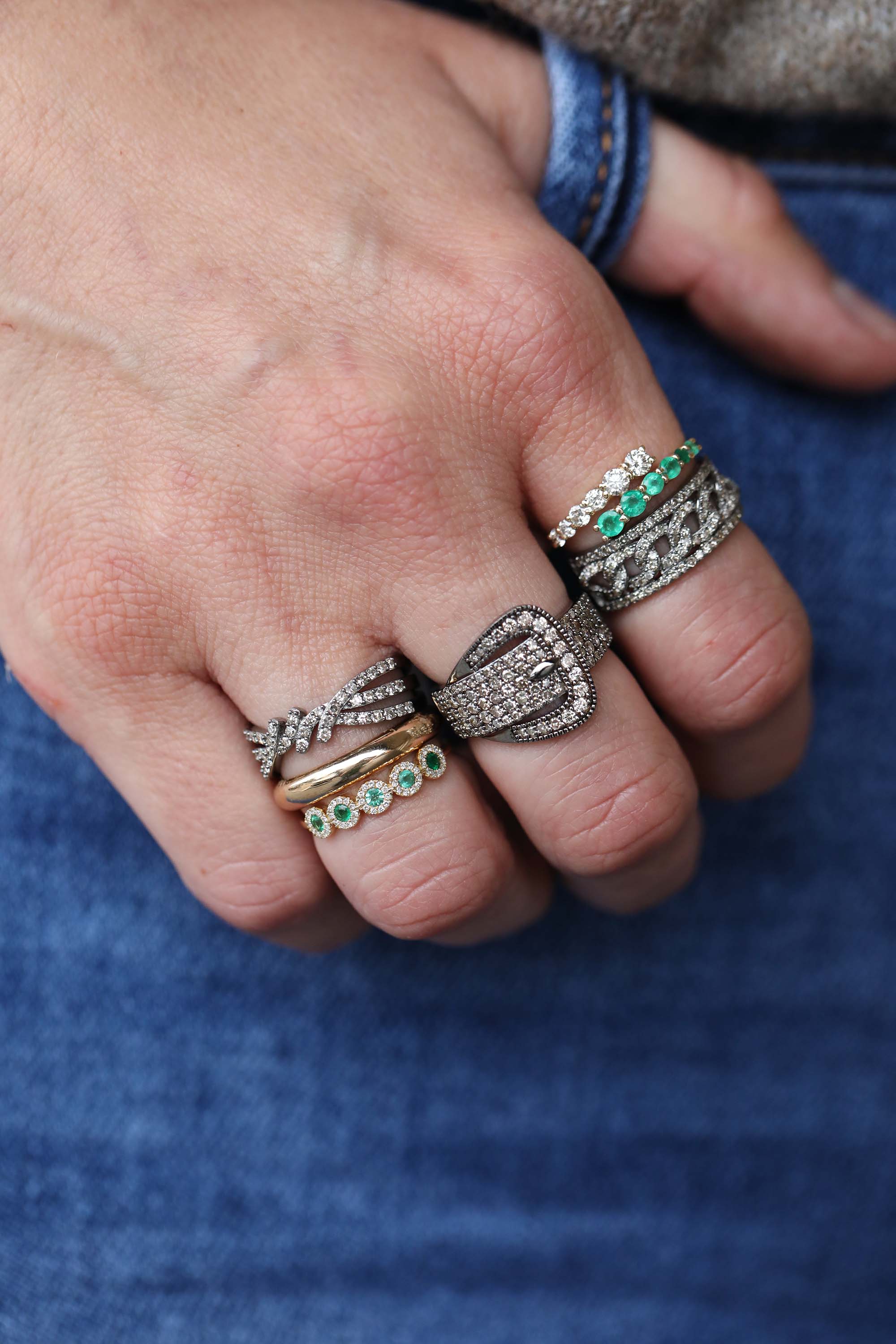 This emerald diamond wrap ring is elegant yet whimsical. Add to your stack for a unique look.