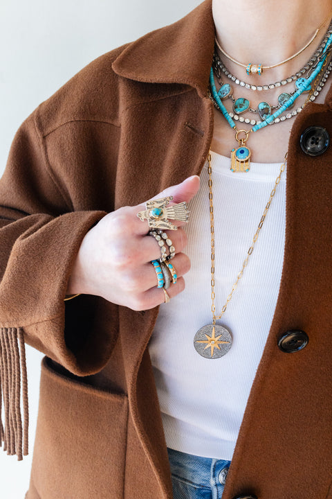 We are loving the modern yet retro feel from this square turquoise ring.