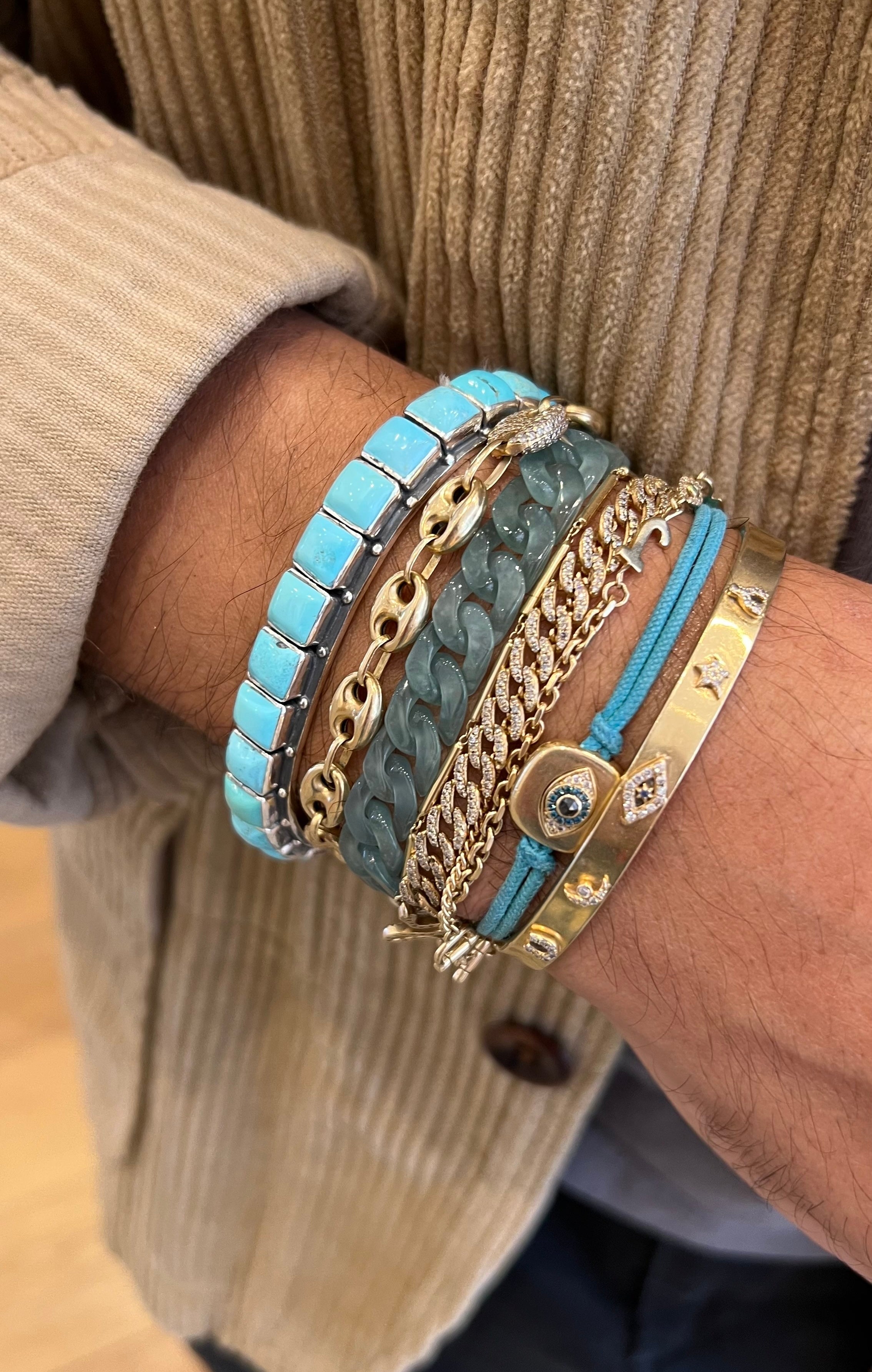 Our favorite - and most wearable - turquoise cuff from designer Federico! This single row turquoise cuff can be stacked and worn with any #wriststack!