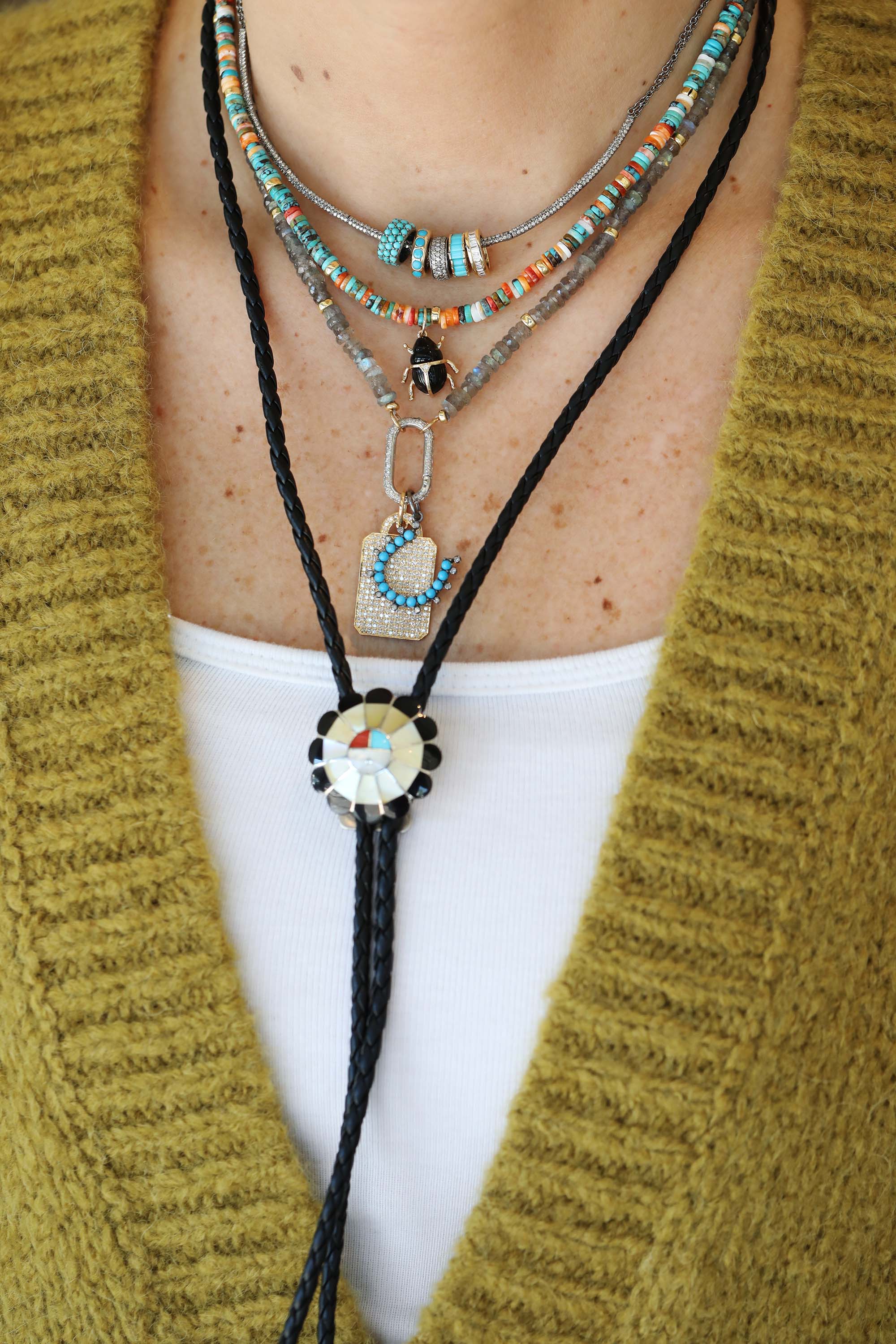 Add some good luck to your layers with this colorful turquoise horseshoe charm!